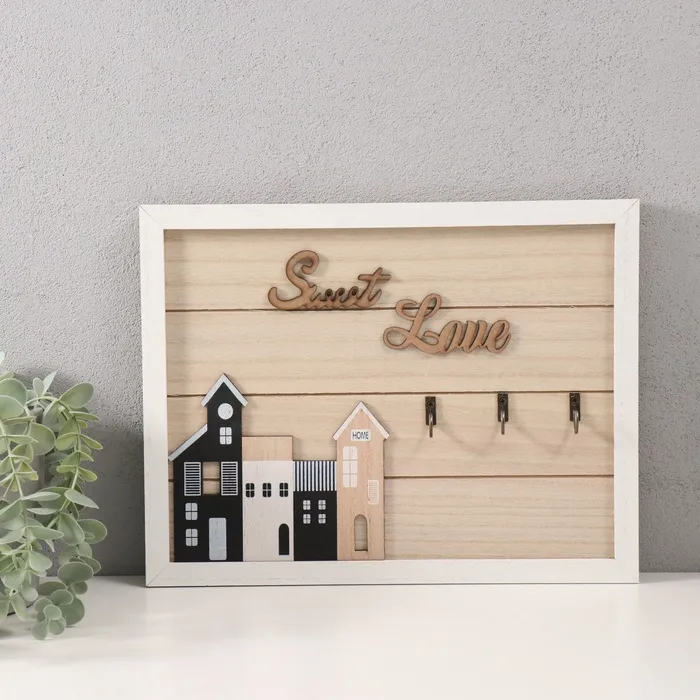 Настенные крючки декоративные «Домики», дерево, 30×24 см
