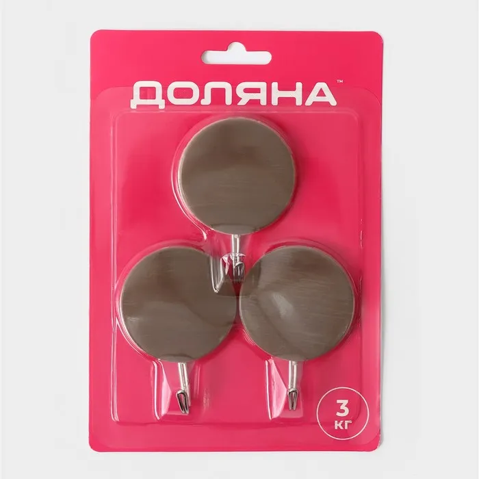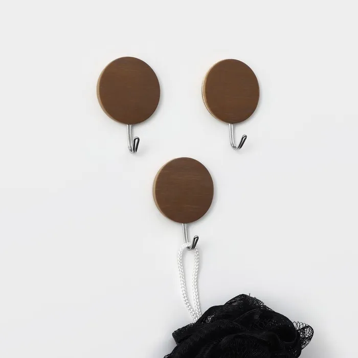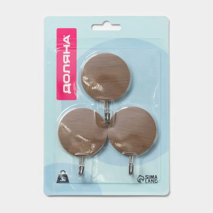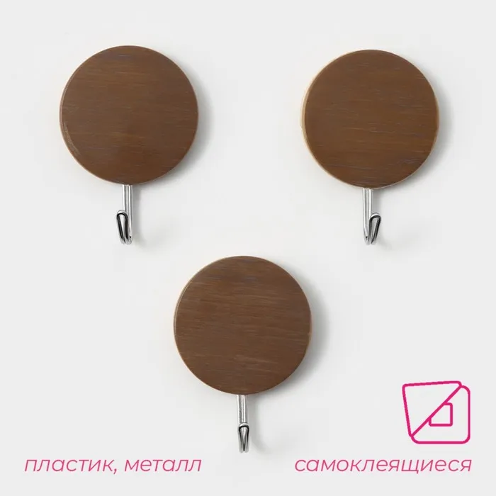 Крючки самоклеящиеся Доляна «Деревянные круги», 3 шт., коричневые — Характеристики
