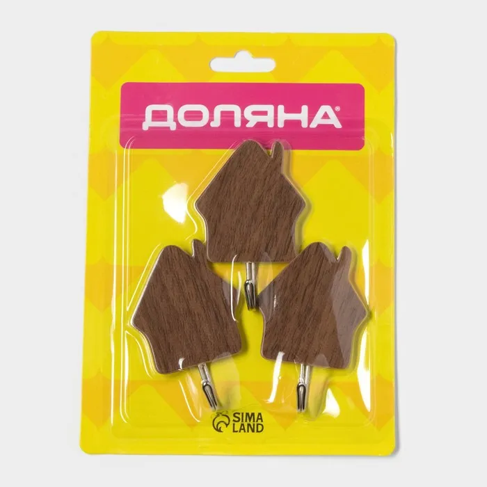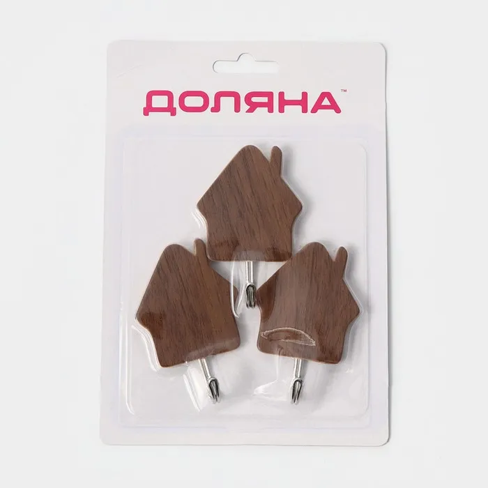 Крючки самоклеящиеся Доляна «Дом», 3 шт., тёмное дерево — Характеристики