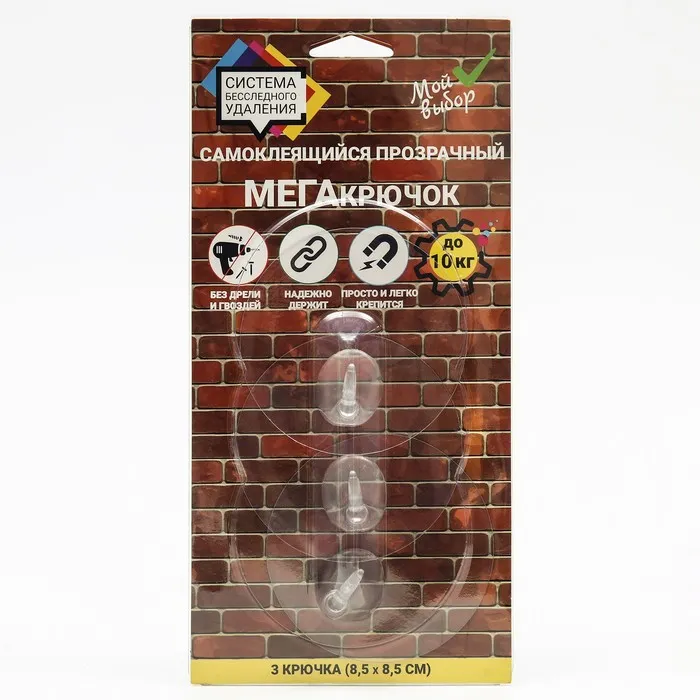 Очистите поверхность, на которую вы хотите прикрепить крючок. Она должна быть сухой.Удалите защитную плёнку с оборотной стороны крючка.Приклейте крючок на сухую, очищенную поверхность. Плотно прижмите изделие и удерживайте в течение минуты.Не используйте крючок первые 24 часа после установки.