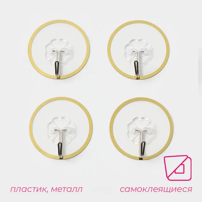 Крючки самоклеящиеся Доляна Gold, 4 шт., 6×6×2 см, прозрачные — Характеристики