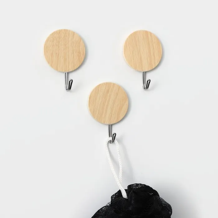 Крючки самоклеящиеся Доляна «Круг», 3 шт, светлое дерево