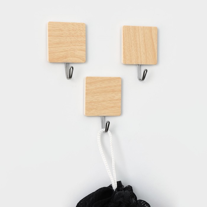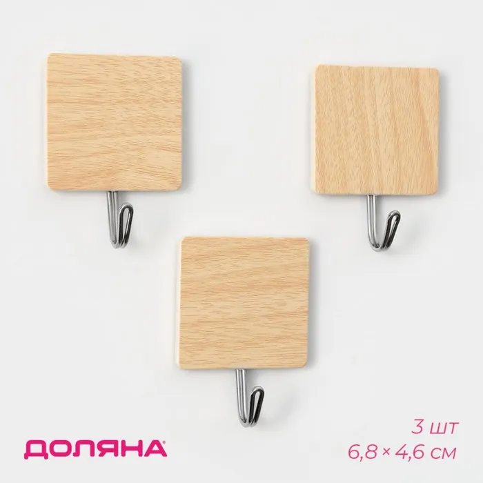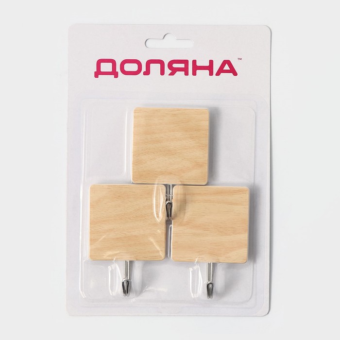 Крючки самоклеящиеся Доляна «Квадрат», 3 шт., светлое дерево — Характеристики