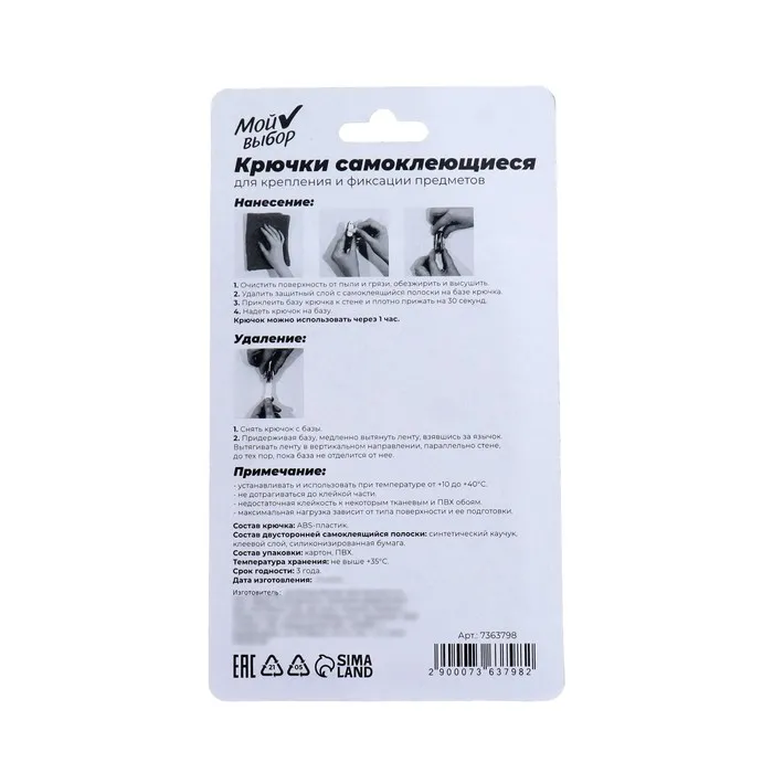 Крючки и аксессуары с системой бесследного удаления и многоразового использования, можно использовать на любых поверхностях для временной фиксации лёгких предметов: полотенец, халатов, плакатов, календарей, фотографий, информационных листов, губок для душа, ключей, брелоков и многого другого.