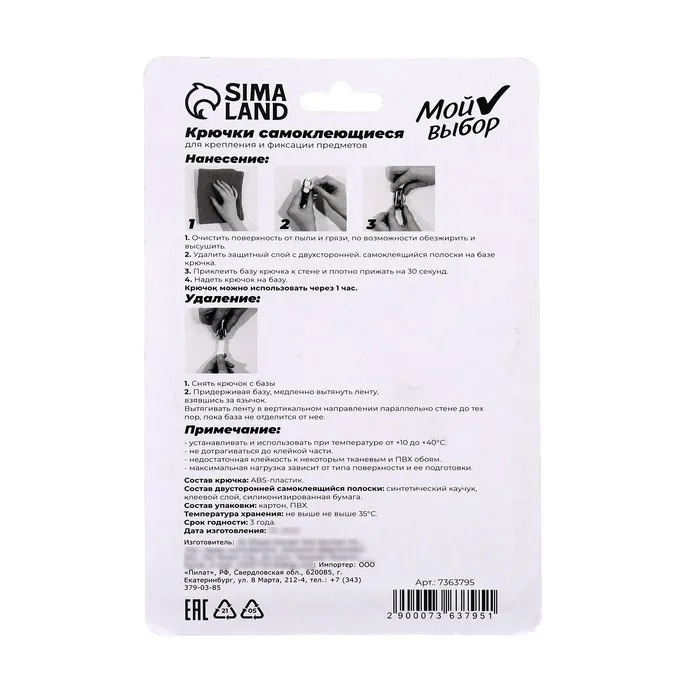 Благодаря системе бесследного удаления, крючки легко крепятся и демонтируются после использования.