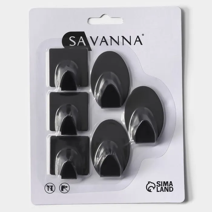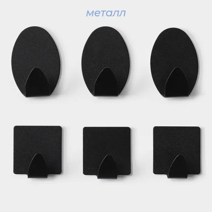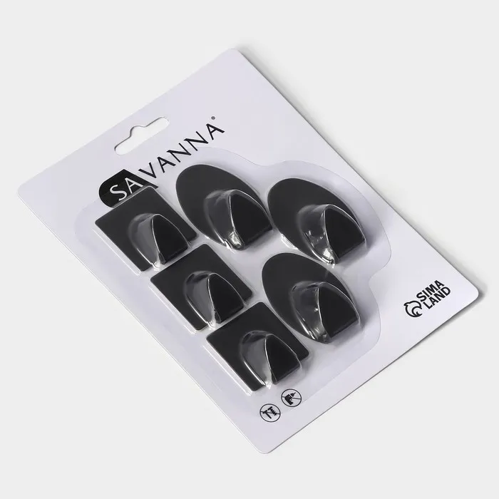 Крючки самоклеящиеся SAVANNA Black Loft, 6 шт., металл, 5.3×3.5 см, чёрные — Характеристики