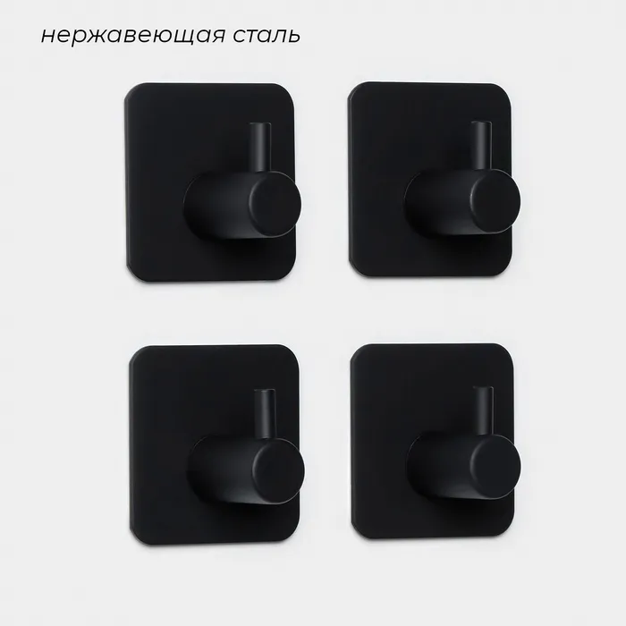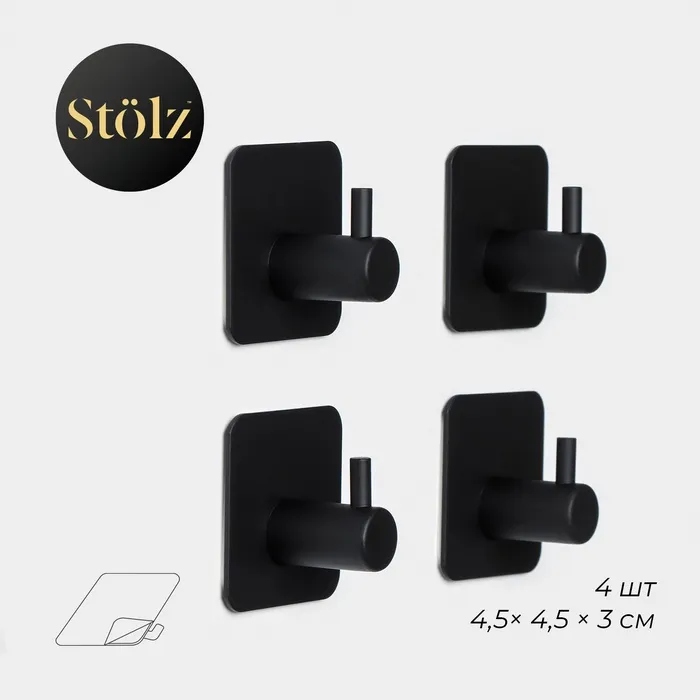 Крючки самоклеящиеся Stölz, 4 шт., для ванной комнаты, 4.5×4.5×3 см, чёрные — Характеристики