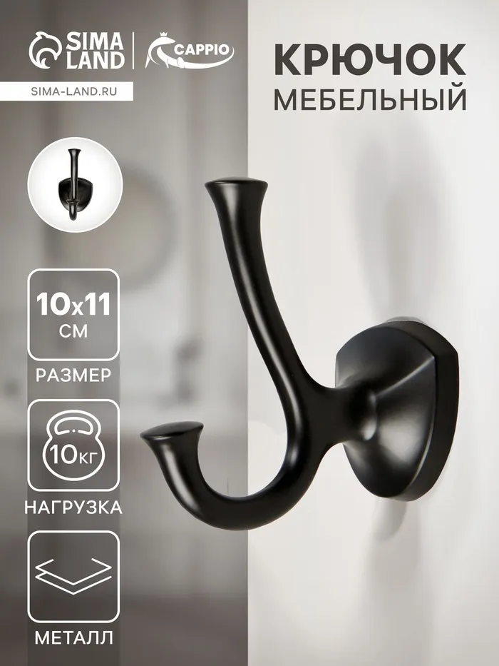 Крючок мебельный CAPPIO VALUE, двухрожковый, цвет черный