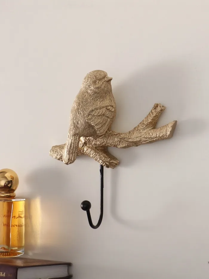 Крючок декоративный полистоун "Золотая птичка на ветке" 18,5х12,5х5,5 см — Характеристики