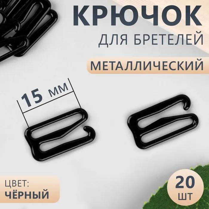 Крючок для бретелей, металлический, 15 мм, 20 шт., чёрный — Характеристики