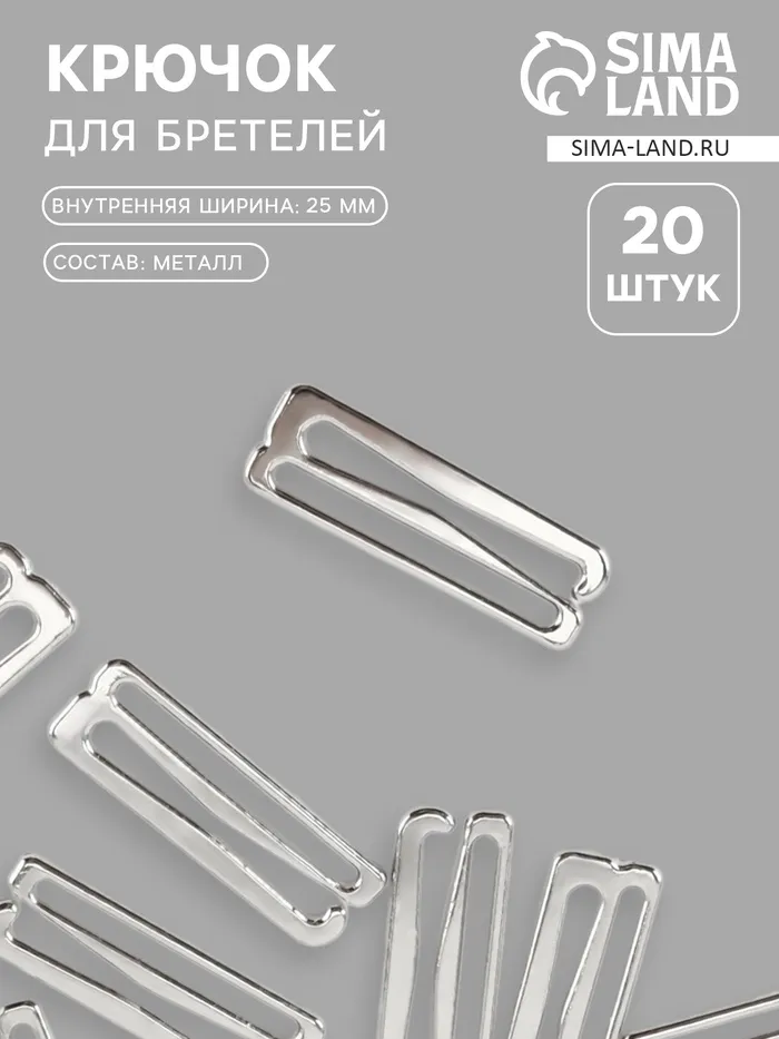 Крючок для бретелей, металлический, 25 мм, 20 шт., цвет серебряный — Характеристики