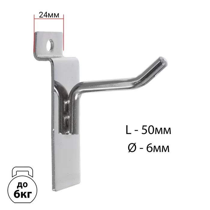 Крючок для экономпанелей, d=6 мм, L=5 см, цвет хром — Характеристики