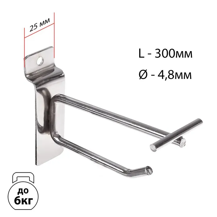 Крючок для экономпанелей с ценникодержателем, d=4,8 мм, L=30 см, цвет хром — Характеристики