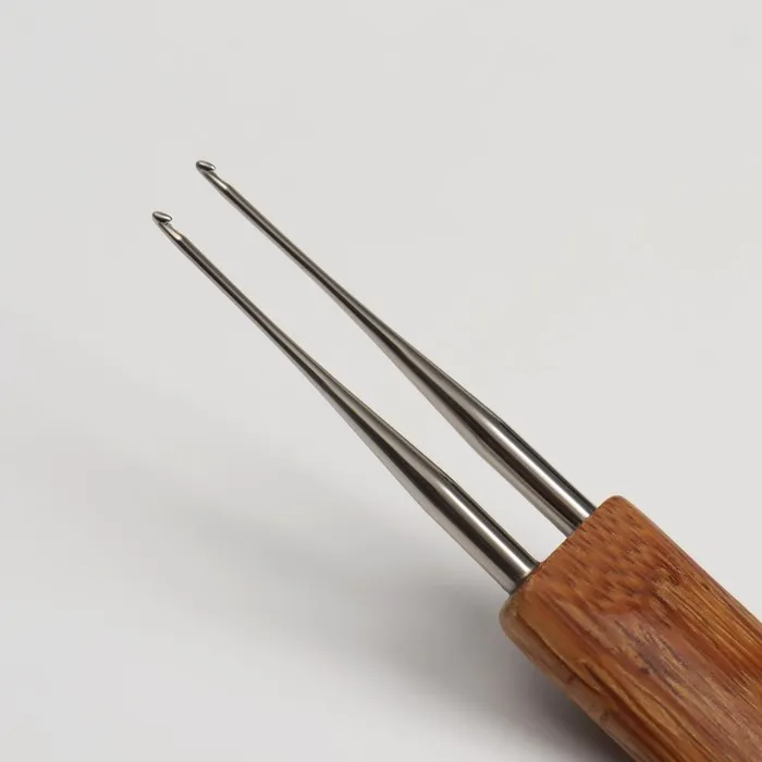Двойной крючок позволяет ускорить процесс валяния дред и делает плетение более быстрым.