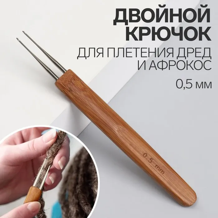 Двойной крючок позволяет ускорить процесс валяния дред и делает плетение более быстрым.