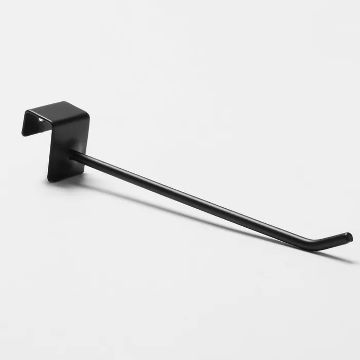 Чёрный матовый цвет придает крючку современный и элегантный вид, который гармонично вписывается в любой интерьер, создавая стильное и аккуратное пространство для товаров. Этот крючок идеально подходит для подвешивания различных товаров, таких как аксессуары, упаковки, инструменты или одежда, обеспечивая удобный доступ и поддерживая порядок на стенде или витрине.