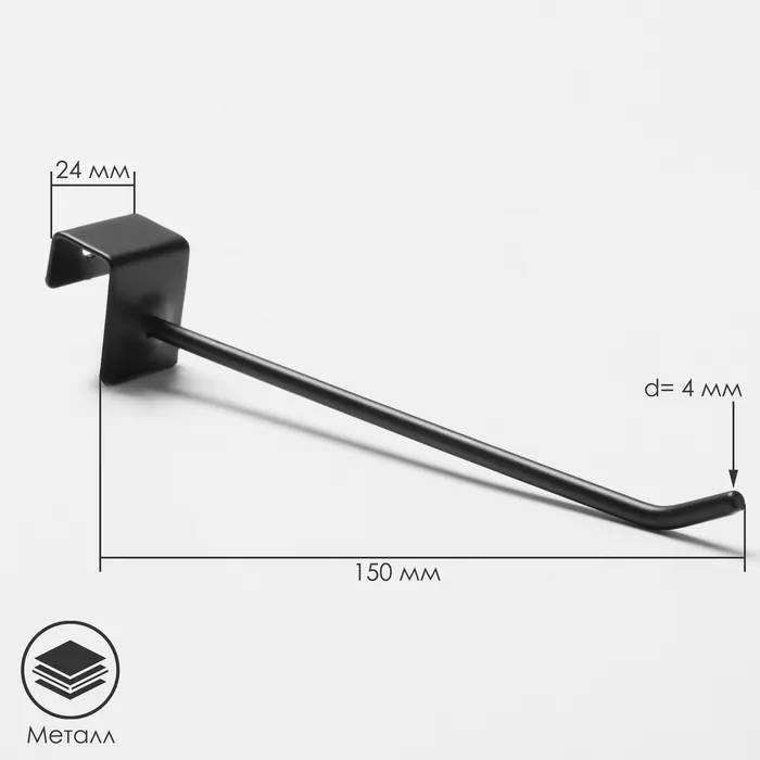 Крючок для металлических экономпанелей (d=4 мм, цвет чёрный матовый) — это удобный и функциональный аксессуар для организации хранения товаров на экономпанелях. Изготовленный из прочного металла с диаметром 4 мм, крючок обладает высокой надежностью и долговечностью, что делает его идеальным для использования в магазинах и торговых точках.