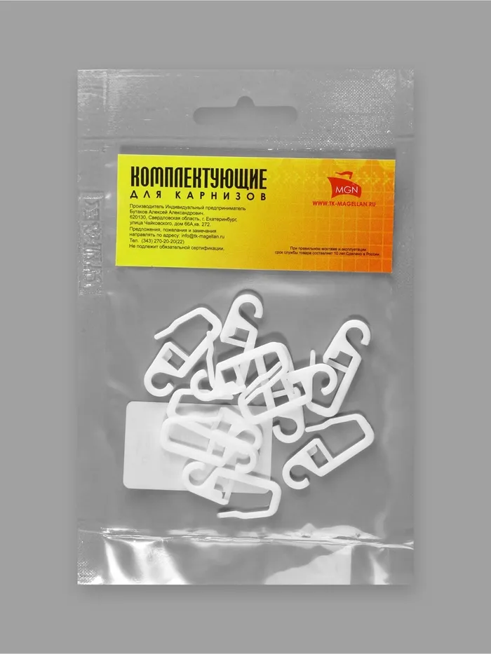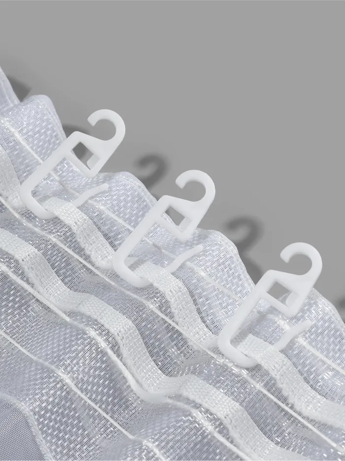 Пластиковые крючки — самый популярный и удобный вариант для крепления штор на карнизе. Они легко крепятся в шторной ленте и на кольце для карниза.