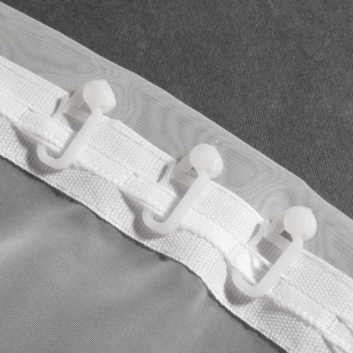 Крючок — самый незаметный инструмент для крепления занавесок. Одной стороной зацепите шторную ленту, а другую поместите на кольцо: она плотно сядет на округлую фурнитуру. Изделия не видны для глаз и способны вписаться в любой интерьер. Выполнены из качественного износостойкого пластика и можно использовать для крепления тяжелых солнцезащитных шторок. Конструкция будет плавно скользить по потолочной гардине, а шторная фурнитура останется невидимой для глаз.