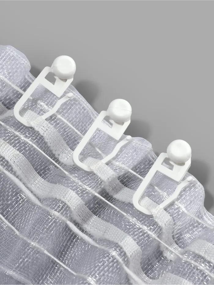 Используйте крючки, чтобы повесить на карнизе шторы или тюль. Проденьте в шторную ленту конец крючка, а ролик вставьте в специальный рейлинг. Изделия помогут быстро открыть шторы и вернуть их на место.