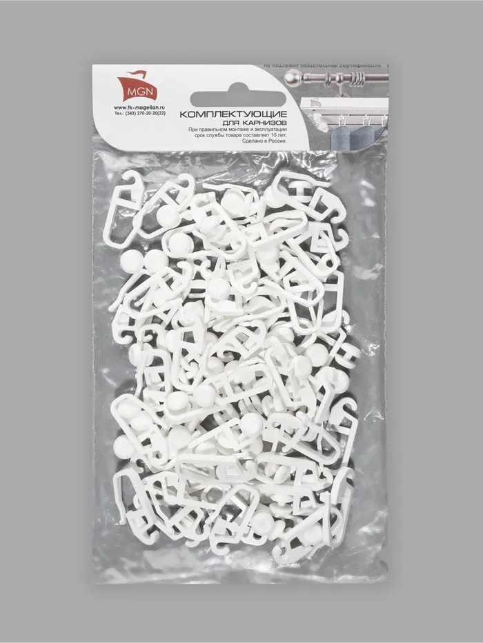 Крючок для штор, ролик с замком разобранный, 2.5×1.3 см, белый — Характеристики