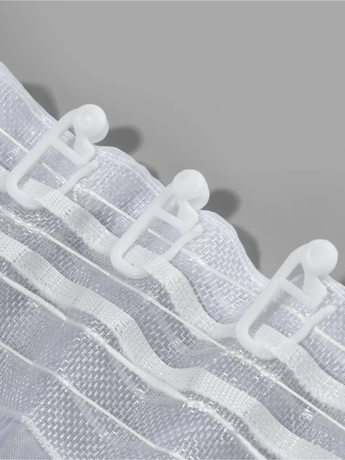 Используйте крючки, чтобы повесить на карнизе шторы или тюль. Проденьте в шторную ленту конец крючка, а ролик вставьте в специальный рейлинг. Изделия помогут быстро открыть шторы и вернуть их на место.