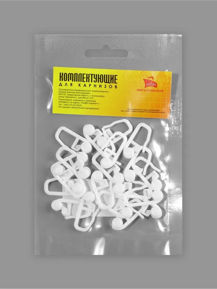 Крючок для штор, роликовый, 25×11 мм, белый — Характеристики