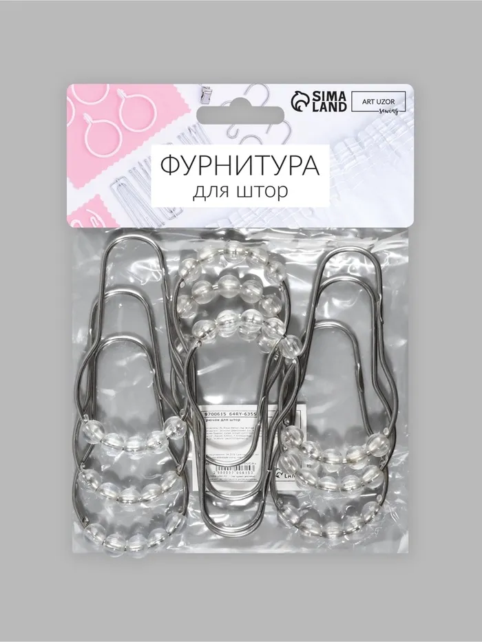 Крючок для штор с шариками, 7.5×4 см, 10 шт., цвет серебряный, прозрачный — Характеристики