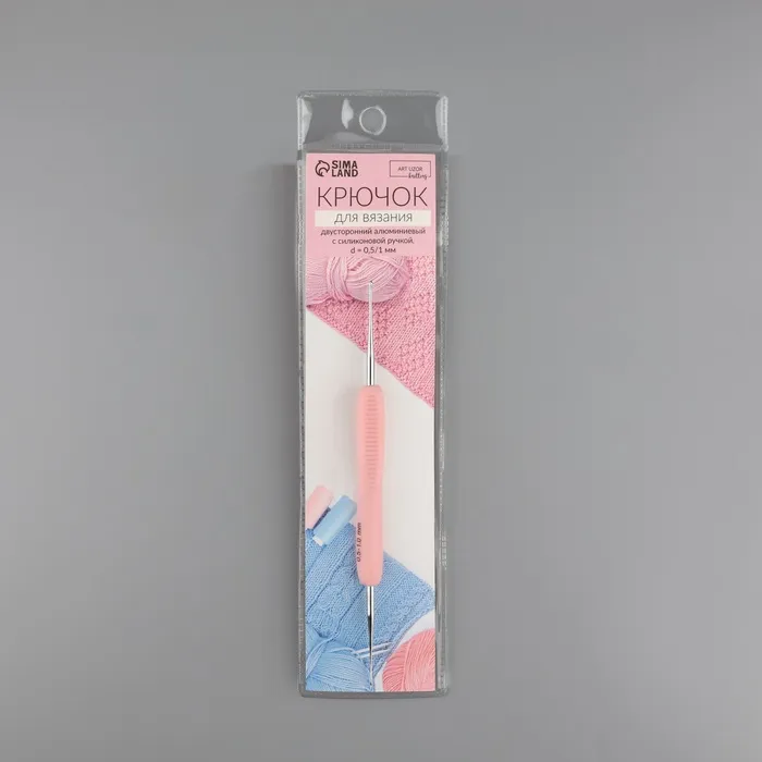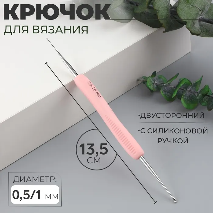 Крючок для вязания, двусторонний, с силиконовой ручкой, d=0.5/1 мм, 13.5 см, розовый — Характеристики