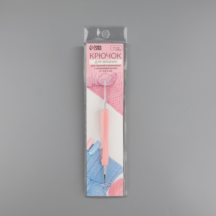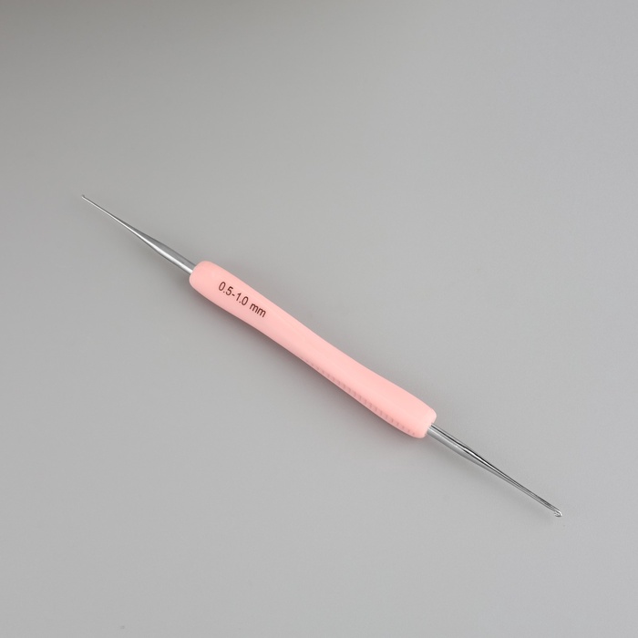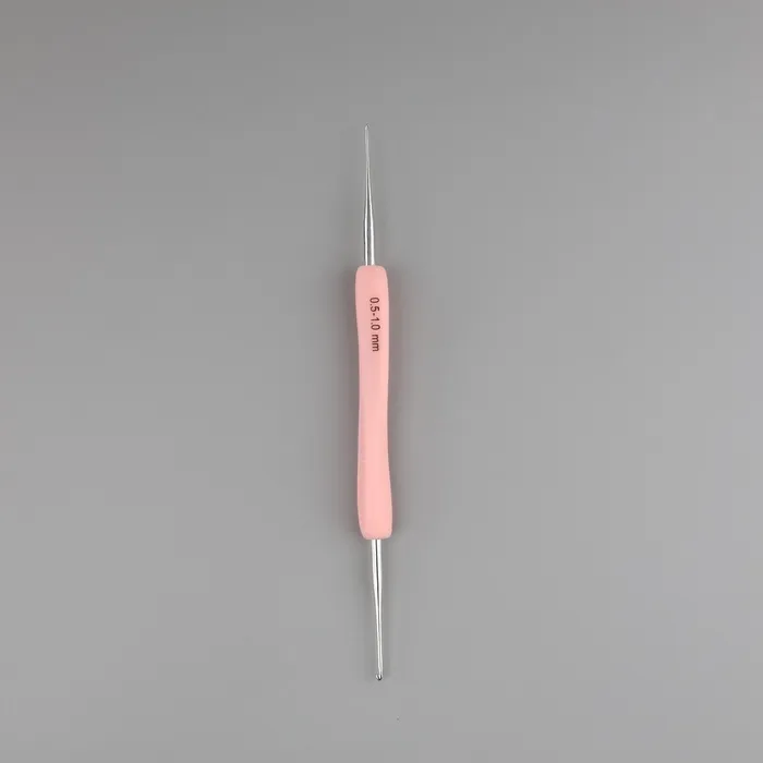 Крючок для вязания, двусторонний, с силиконовой ручкой, d=0.5/1 мм, 13.5 см, розовый
