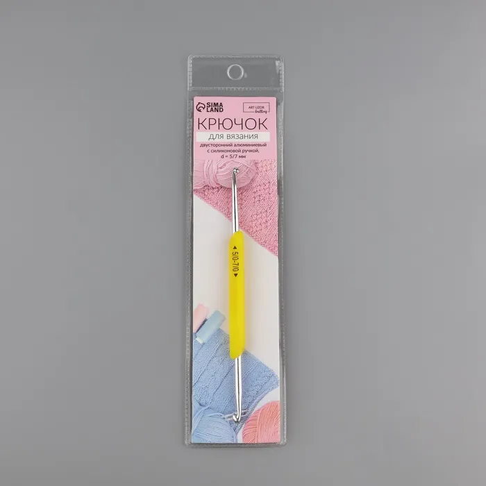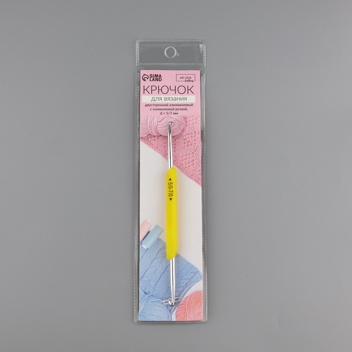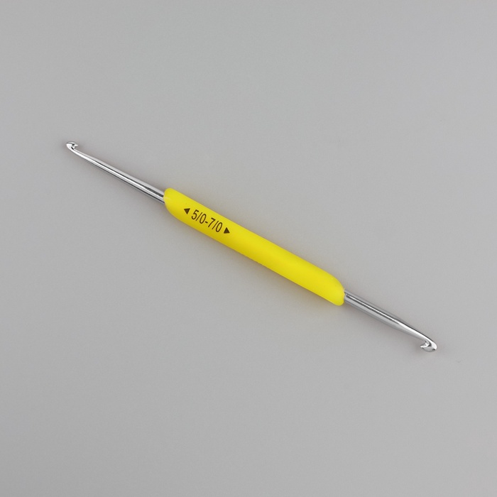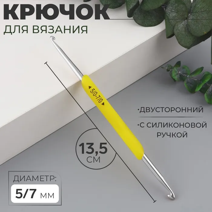Крючок для вязания, двусторонний, с силиконовой ручкой, d=5/7 мм, 13.5 см, жёлтый — Характеристики