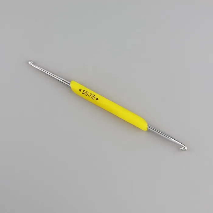 Крючок для вязания, двусторонний, с силиконовой ручкой, d=5/7 мм, 13.5 см, жёлтый