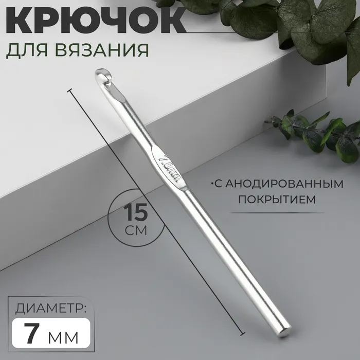 Крючок для вязания, с анодированным покрытием, d=7 мм, 15 см — Характеристики