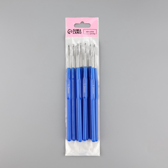Крючок для вязания, с пластиковой ручкой, d=1 мм, 13.5 см, синий