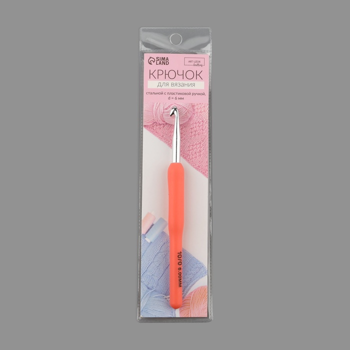 Крючок для вязания, с пластиковой ручкой, d=6 мм, 14 см, оранжевый — Характеристики