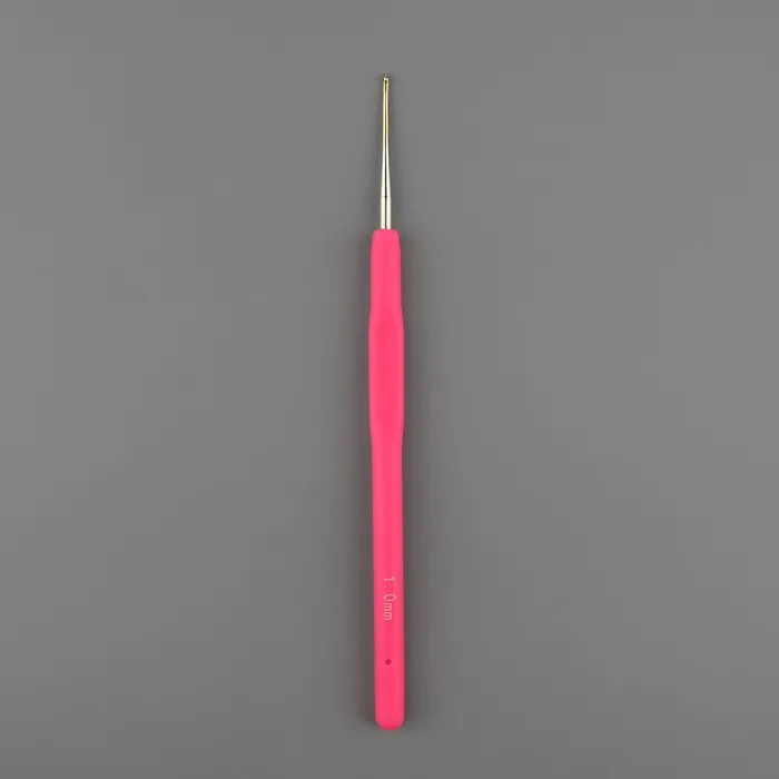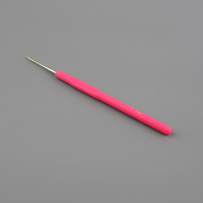 Крючок для вязания, с силиконовой ручкой, d=1 мм, 13 см, розовый