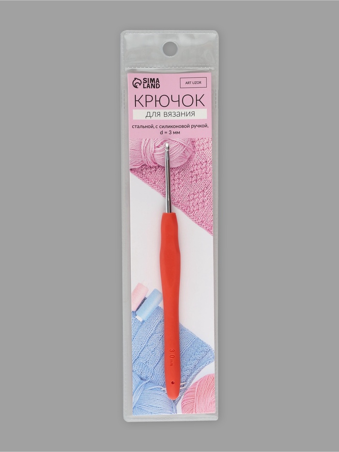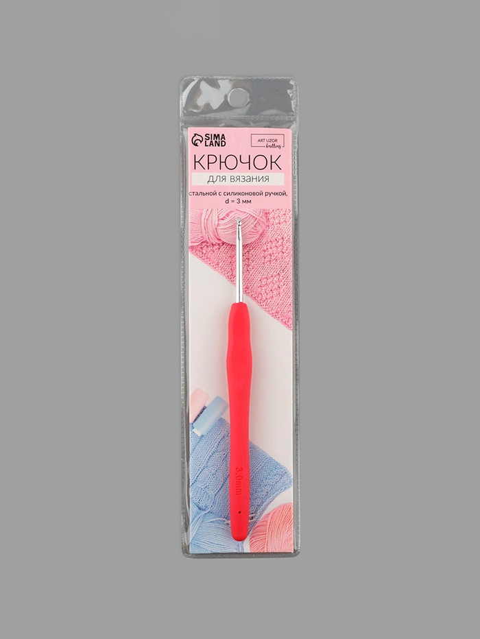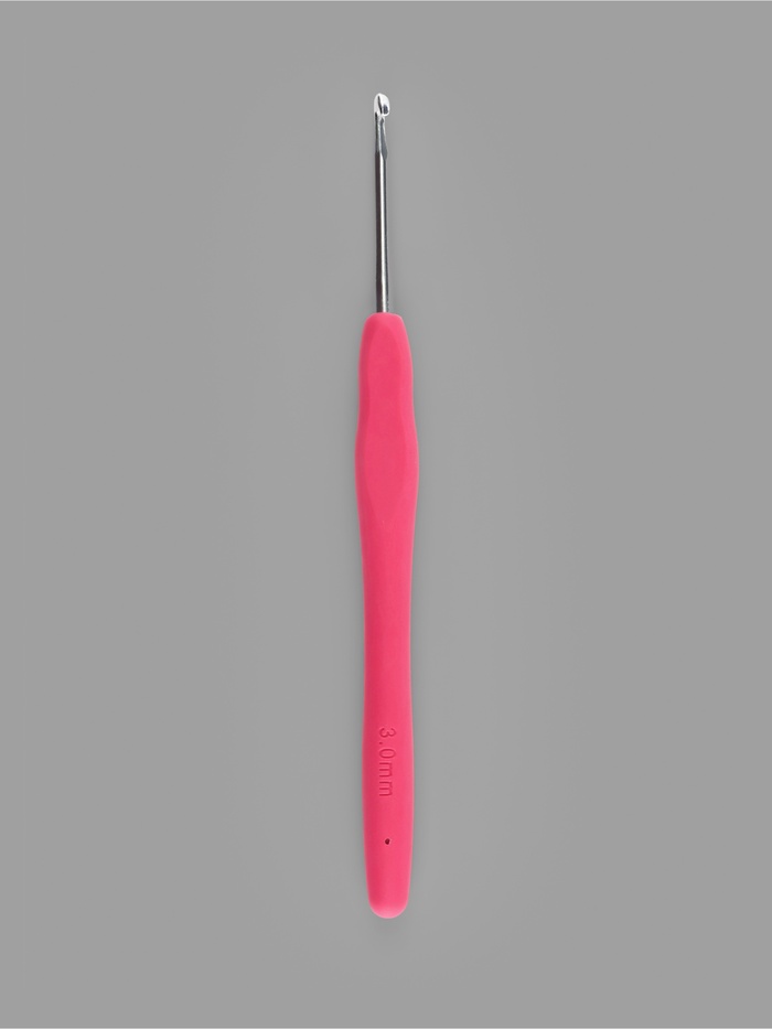 Крючок для вязания, с силиконовой ручкой, d=3 мм, 14 см, розовый — Характеристики