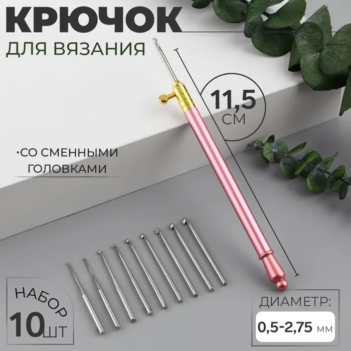 Крючок для вязания, со сменными головками, 10 шт., d=0.5-2.75 мм, 11.5 см, МИКС — Характеристики