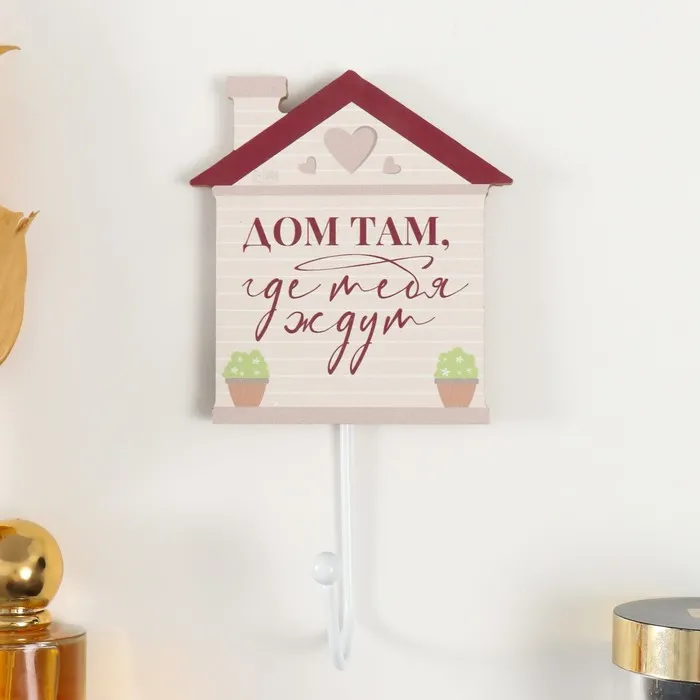 Настенный крючок декоративный «Дом там, где тебя ждут», дерево, 10×11 см