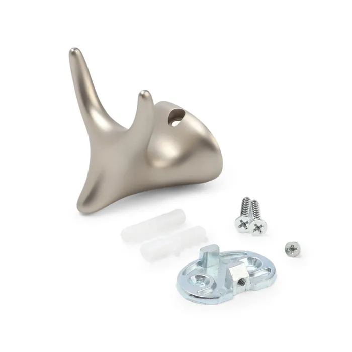 Крючок мебельный CAPPIO BAMBI, двухрожковый, цинк, цвет матовый сатиновый никель — Характеристики