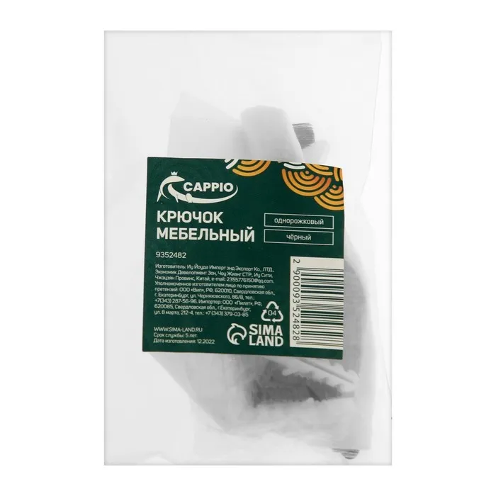 Крючок мебельный CAPPIO CHALICE, однорожковый, цвет черный — Характеристики