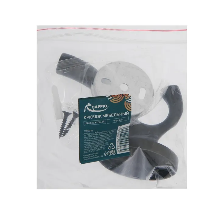 Крючок мебельный CAPPIO CONE, двухрожковый, цвет черный — Характеристики