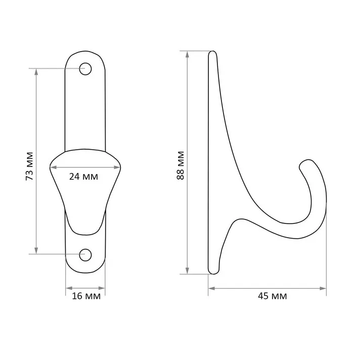 Крючок мебельный ТУНДРА TKd=008, двухрожковый, черный