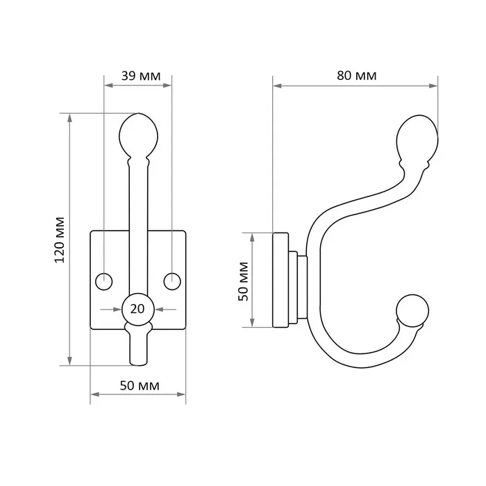 Крючок-вешалка №3, покрытие цинк