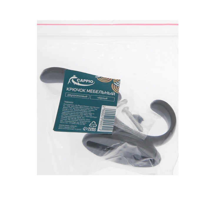 Крючок мебельный CAPPIO FLOW, двухрожковый, цвет черный — Характеристики