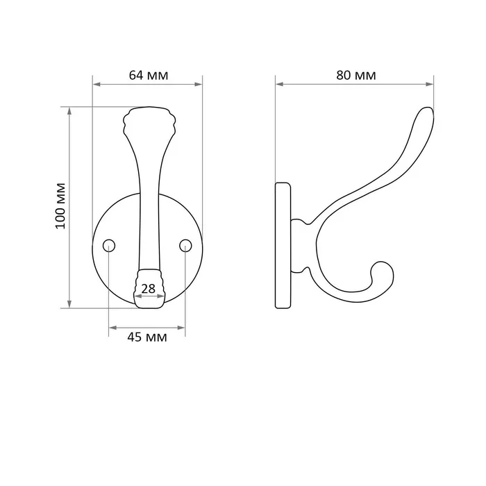 Крючок мебельный CAPPIO GLORIA, двухрожковый, цвет черный — Характеристики