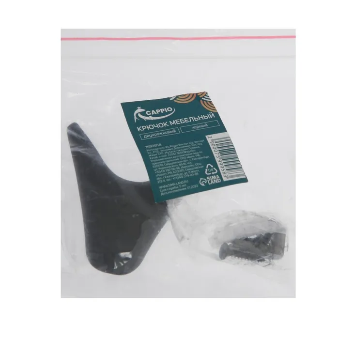 Крючок мебельный CAPPIO GOAT, двухрожковый, цвет черный, 3 шт — Характеристики