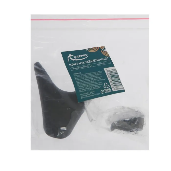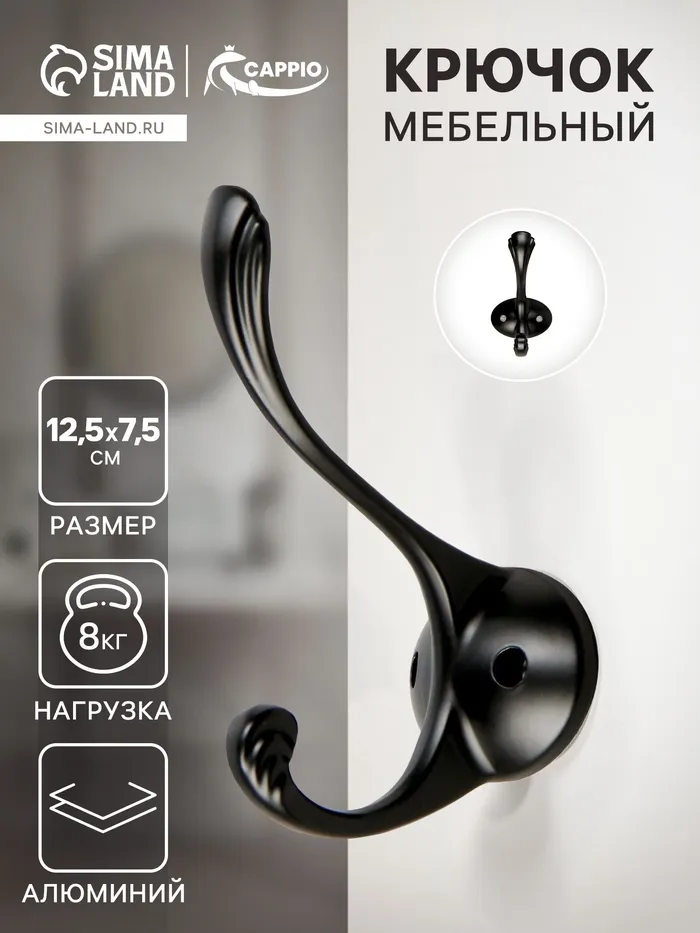 Крючок мебельный CAPPIO GOAT, двухрожковый, цвет черный — Характеристики