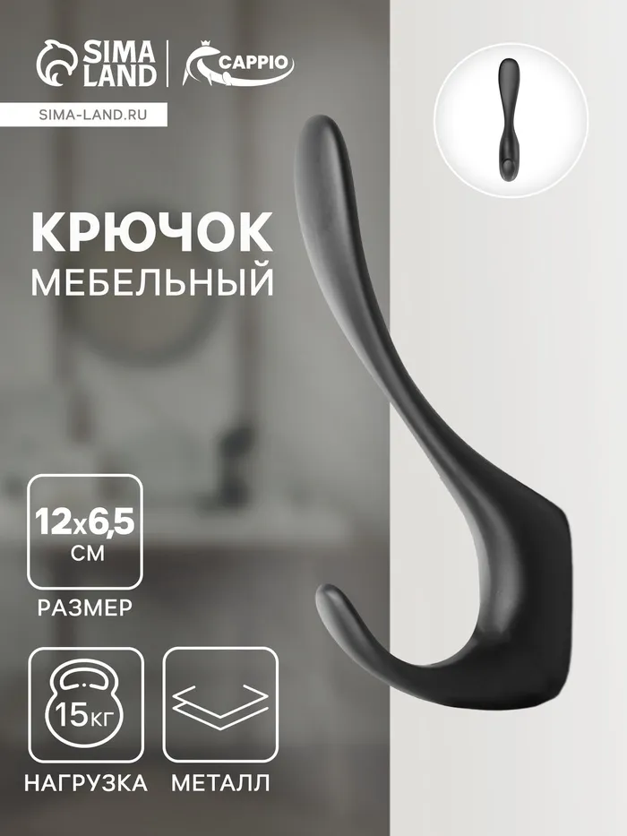 Крючок мебельный CAPPIO HEEL, двухрожковый, цвет черный — Характеристики