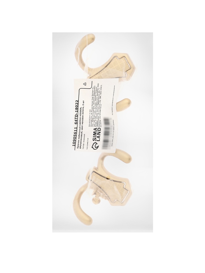 Крючок мебельный CAPPIO HIDDEN, двухрожковый, цвет матовое золото, 2 шт. — Характеристики